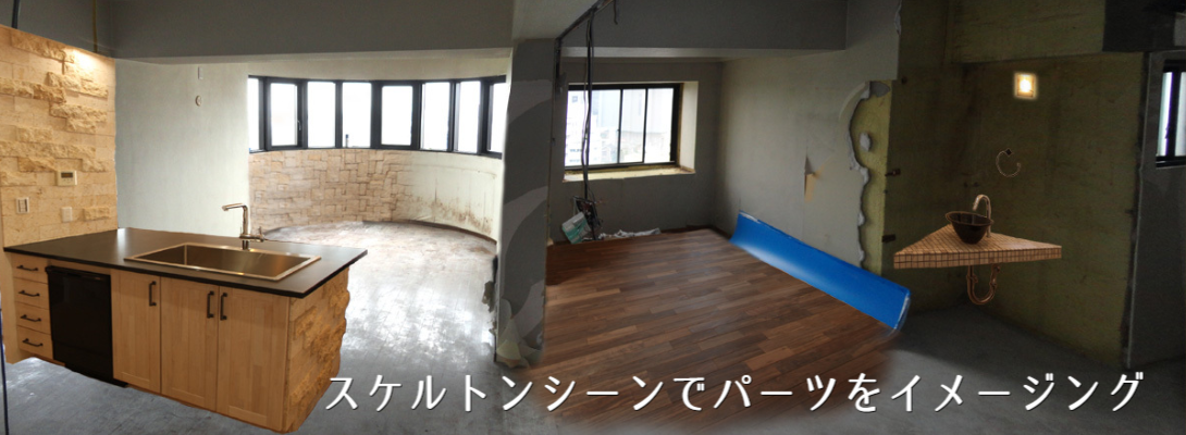 解体工事→設備配管→電気配線→間仕切り壁・天井・床工事→住宅設備機器→漆喰塗り→造作家具工事となります。