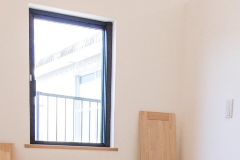 四方枠→三方漆喰塗り、下部窓台無垢栂材