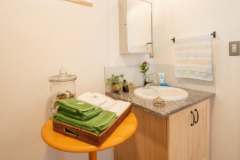 無添加オリジナル洗面台(天然石天板、陶器製ボウル、木製キャビネット、シングルレバー水栓、鏡)