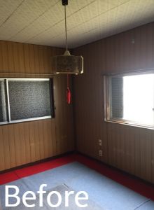 築30年の部屋、壁はプリント合板、天井は化粧板です。