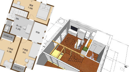 また、お客様にわかりにくい部分については、パースなども描き、立体的にイメージしやすくする作業も行います。平面図では高さ関係があまりよくわからない部分もありますので、そのあたりの表現も考慮します。