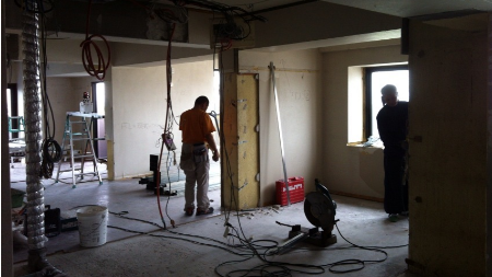 工事が進んでくると、特に設備や電気関係の位置の確認を現地で立ち会いのもと確認していきます。