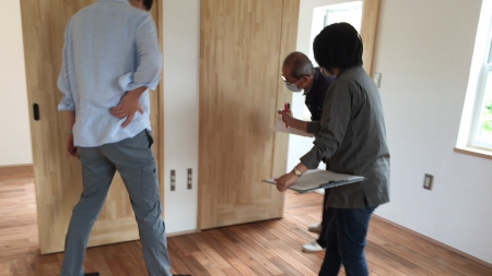 工事がほぼ完成する前に社内検査を自主的に行い、確認しながらある程度の手直しを行います。その後、オーナー様の立ち会いのもと、現地で確認して頂き、検査を行います。