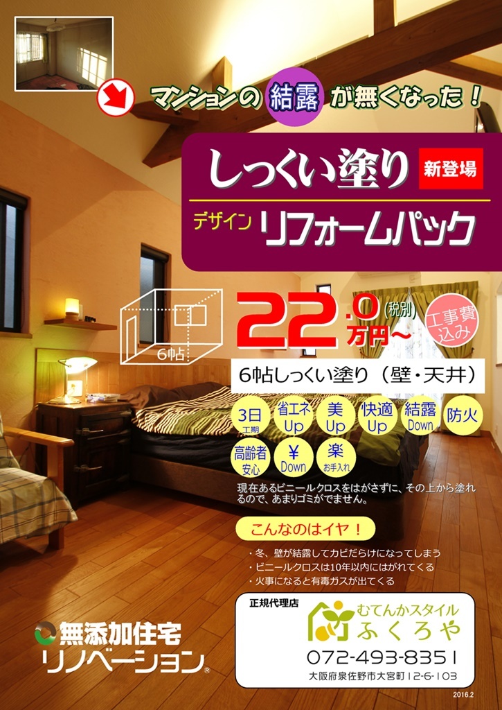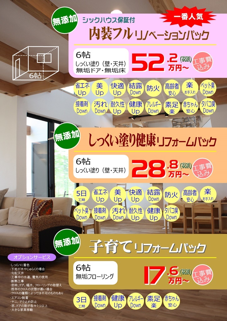 以上のような注意事項を回避する場合は、しっくい塗り健康リフォームパックを推奨いたします。